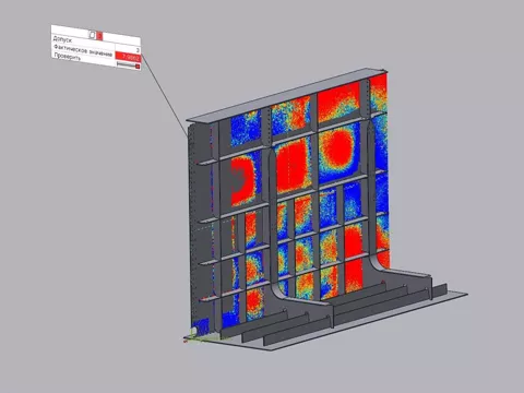3D-сканирование с использованием наземного лазерного 3D-сканера и обработка результатов в специализированном ПО для контроля геометрии.