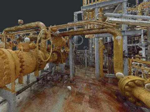 - Полученный трехмерный скан позволил объединить все существующие двухмерные чертежи, базовые и проектные, в единый набор основных инженерных записей (MERS)