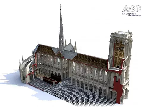 - Вместе с данными, собранными до пожара, удалось получить самую полную и точную 3D-карту Нотр-Дам за всю его историю, состоящую из 50 млрд точек. Особенно точно воссозданы деревянный каркас и шпиль, уничтоженные пламенем.
