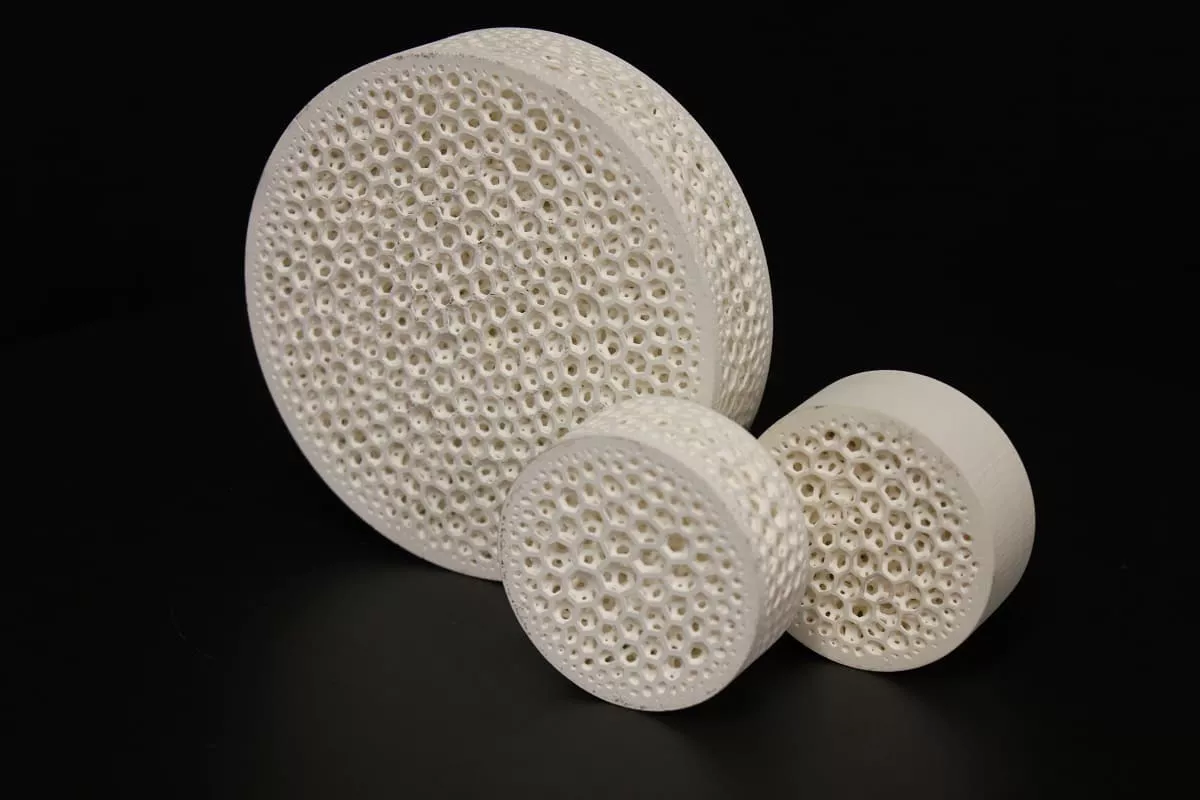 Напечатана партия фильтров из Al2O3 (для литья цветных металлов и сплавов, например, алюминия) и SiC (для литья черных металлов и их сплавов, а также меди и сплавов на ее основе) с помощью технологии DLP — послойного УФ-отверждения суспензии фотополимерной смолы с керамическими частицами